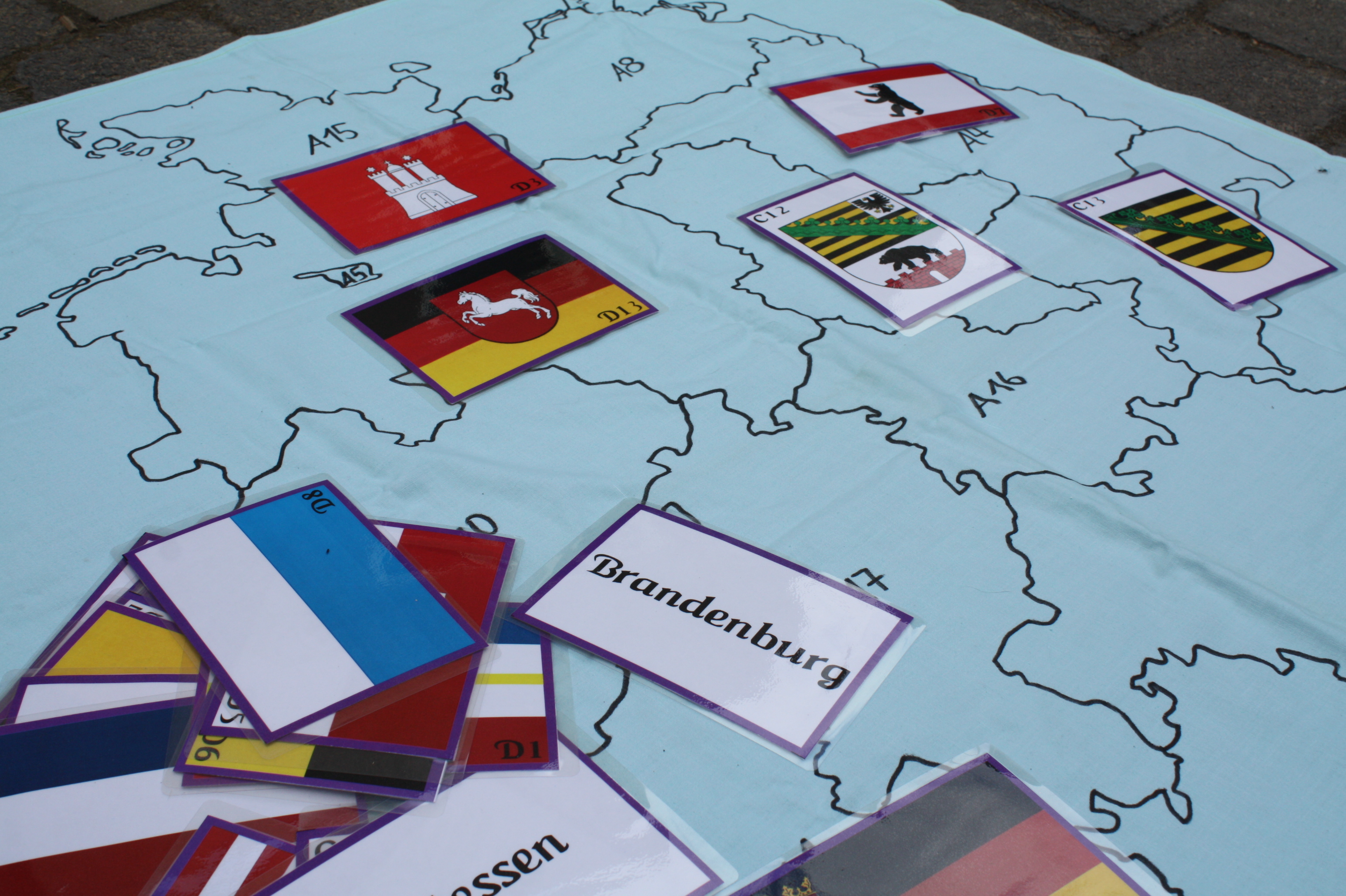 16 Bundesländer, 16 Hauptstädte, 16 Wappen und 16 Fahnen.