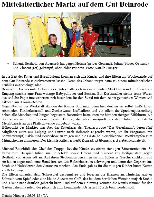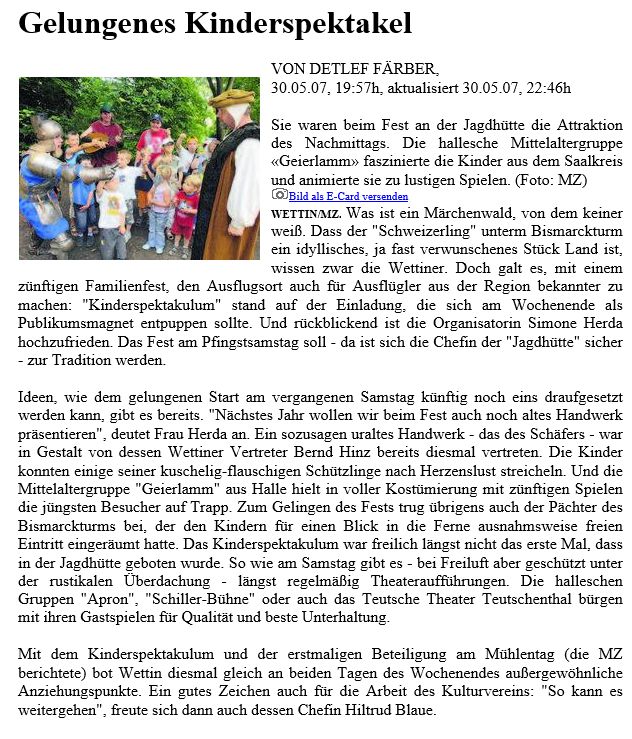 Im Folgenden ein paar Zeitungsartikel, Bilder und andere Referenzen: